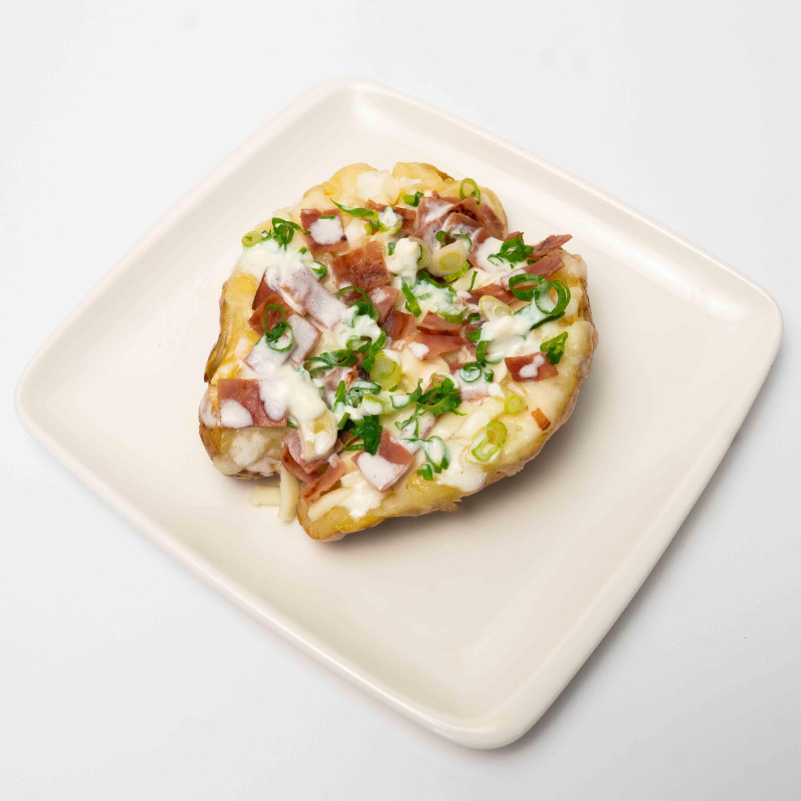 low fat cheddar cheese, bacon, green onion, sour cream (protein 12 Carbs 38 Fat 8 cal 275)
