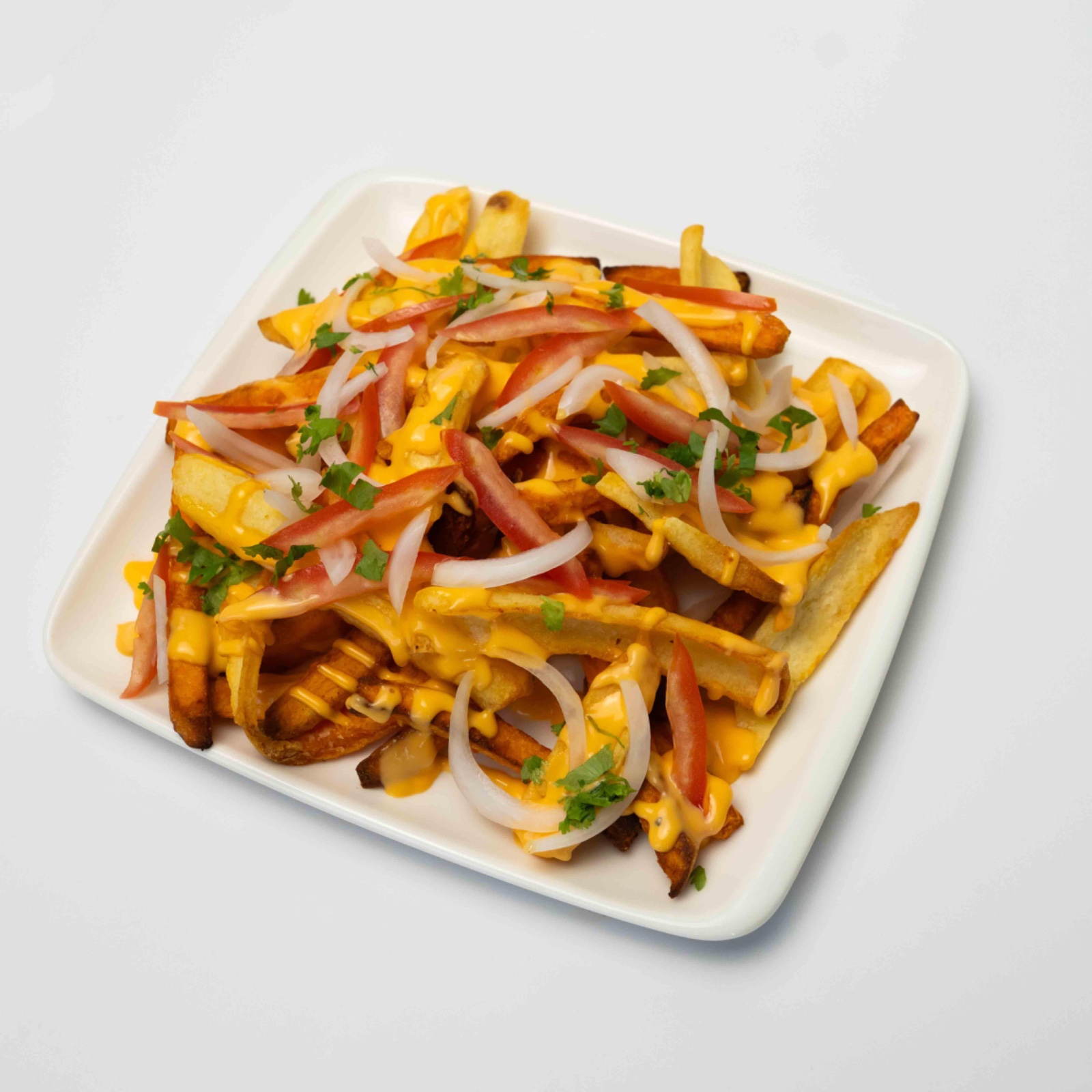 sweet potato,rosted potato, special low fat chees sauce tomato , onion