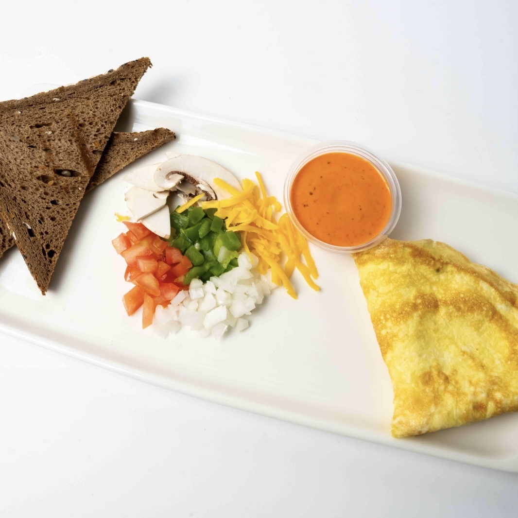 white eggs, vegetables, mushrooms, tomatoes, pepper, onion, cheddar