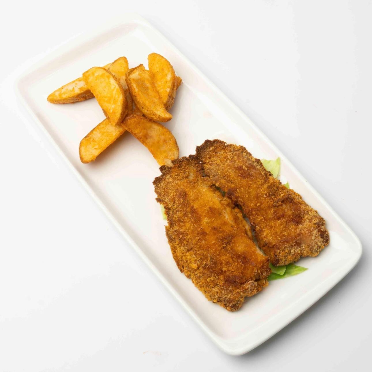fish fillet,our special sauce,rosted potato Weight : protein 100 g / carbs100 g (protein 26 Carbs 33 Fat 7 Cal 299)